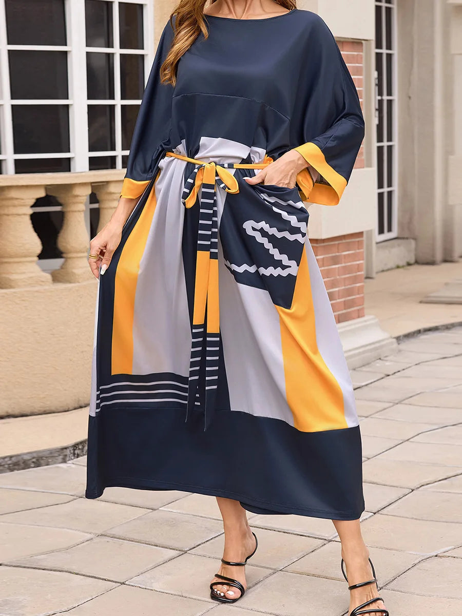 Elegant Mu Women s Ramadan Dress with 3 4 Sleeves and Boat Neckline Flowy Long Gown with Contrast Color Detailing Perfect